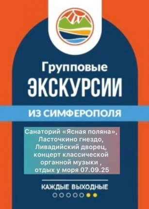 - 07.09.25«Ясная поляна», Ласточкино гнездо,Ливадийский дворец