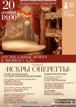 Выберите способ оплаты ПлайтМузыкальные вечера в Зимнем саду "Искры оперетты"